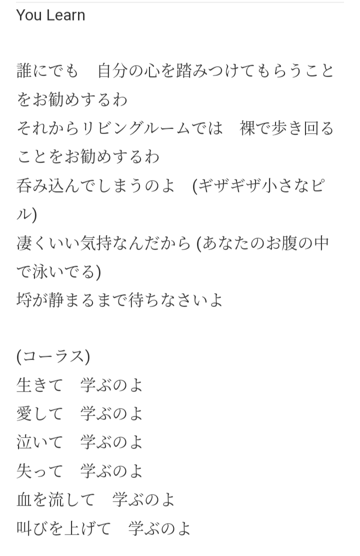 ・・・ちょうど昨日テレビでアランズ・モリセットという歌手の“YOU LEARN”という曲の歌詞が刺さると紹介していたので引用しておこう。