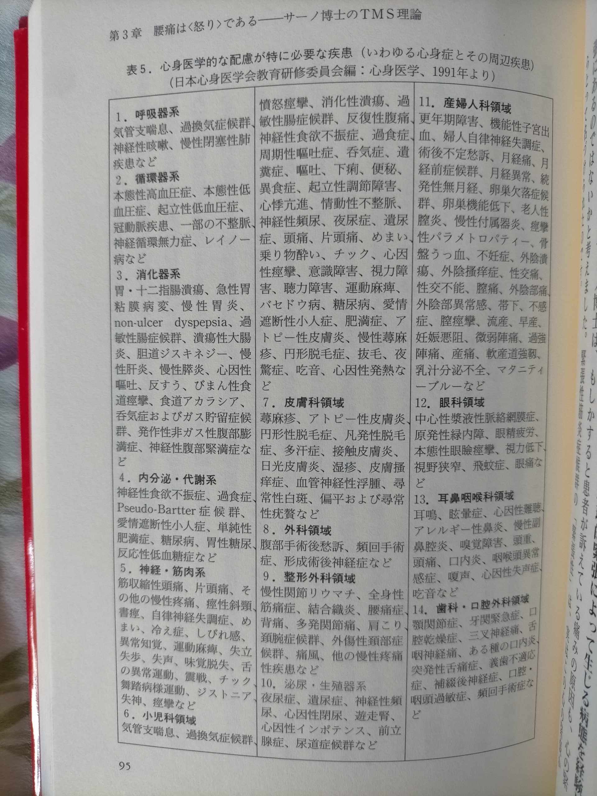 喘息やアトピー性皮膚炎その他の持病が治らないのも同様の理由からである可能性があります。私たちの体が恒常性を保つことしかしていないと考えれば持病はその人(の体)にとって恒常性を保つ条件に組み込まれてしまうと取り除けないものになってしまうという事です。引き寄せの法則でもお金持ちになりたければお金持ちのように振る舞え、あるいはお金持ちから財布をもらえ、成功したければすでに成功したつもりで生活せよと教えていますね。私たちの社会に怒りがあふれているのも処理し切れないストレスを怒り(によるアドレナリンやノルアドレナリン、コルチゾールの分泌)で対応しているからで多くの人がその代償として何らかの身体的、精神的持病を抱えています。喫煙や飲酒を怒りの表現として利用している人は少なくないですし、中には怒りを偽造するために敵を作ったり、戦争やパンデミックや社会悪がなければ経済(経済団体の利益)を維持できないと主張する人もいます。さらに社会悪と闘って取り除くよりもストレスや経済難およびそれによる持病を個人で抱え込む方が社会のためになる、親や政府などの支配者層を困らせたくないと思い込んでいる人も多いですね。喘息や自閉症などの持病を抱えた子どもも家の中に処理しきれないストレスがあってこれに正面から立ち向かう知恵や力(自立能力を含む)がないために葛藤行動として癇癪や咳発作やじんましんを起こしている可能性があると考えられるのです。こういう人は病気を怒りの表現方法として自己目的化しているためにいくら薬を飲んでも粛々としたルーティン生活を送っても症状が改善することはありません。怒りの原因を取り除くかストレス源を公言して正面から立ち向かうか持病を怒りのせいだと認識して患部にその影響が向かわないよう怒り方すなわちストレス発散法を変えるかなどが適切な対処法になるでしょうか。体操の内村航平選手もオリンピックで鉄棒競技中にぎっくり腰を発症しながら着地を決めて逆転金メダルを獲得したというエピソードを持っていますがこれはぎっくり腰も気持ちで抑え込める病気の一つであることを表しています。つまり他にやるべきことや成し遂げるべきことを作って持病を無視してしまえば肥満だろうが腰痛だろうが更年期障害だろうが精神病だろうが退散してしまうということです。私の言葉が信じたくない人はTMS(緊張性筋炎症候群)ジャパン代表の長谷川淳史さんが書かれた『腰痛は〈怒り〉である――痛みと心の不思議な関係〈普及版〉』(春秋社)を読んでみてください。心身医学会教育研修委員会が1991年に作成した心身症リストに気管支ぜんそくやアトピー性皮膚炎が掲載されているのを見るでしょう。私も脳科学の辞書的な本を求めてこのリストを手に入れるためにこの本を買ったのです。乱暴な言い方をすれば病気なんてものは暇な人がかかるもので目標に向かって日々を濃密に生きている人に病気なんてしている暇も怒っている暇もないのです。(しかし生産能力がない人に限って人生には怒りとその安全なはけ口が必要だと考える)
